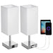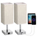 Bordlampe med stofskærm - varm hvid LED-pære, berøringskontrol, skrivebordslampe, USB A- og Type-C-opladningsporte - ideel til natborde, arbejdsborde og studieområder
